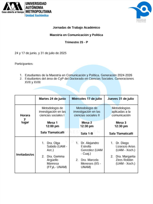 XXV ANIVERSARIO DE LA MAESTRÍA EN COMUNICACIÓN Y POLÍTICA
